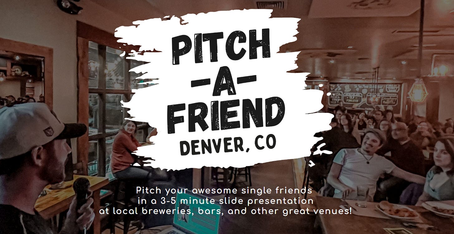 Pitch‑A‑Friend Denver es una iniciativa original de citas presenciales donde amigos o amigas presentan presentan a sus amistades solteras ante una audiencia en bares, cervecerías y locales del área metropolitana, usando una presentación de diapositivas de 3 a 5 minutos. La idea es que estos amigos expliquen, de manera divertida, lo bueno que es su amigo/a, y lo interesante que sería para otras personas solteras conocerlos. Para participar, los “presentadores” deben inscribirse (unos 5 dólares) para reservar su espacio. Para quienes solo quieren asistir, la entrada es gratuita, y tras las presentaciones, hay un espacio informal para socializar y quizás conocer a esa persona interesante en un buen ambiente. Además, el evento de Denver ha expandido su propuesta con “Pitch‑A‑Pet”, incluyendo a mascotas en adopción a través de refugios locales. Ambos tienen el apoyo del Ayuntamiento de la ciudad.