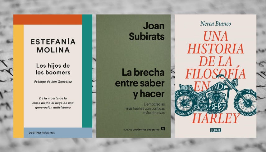 - Los hijos de los boomers: De la muerte de la clase media al auge de una generación antisistema (Estefanía Molina, en Destino). En este manifiesto, Estefanía Molina denuncia los dramas de su juventud y explica por qué tantos jóvenes se sienten atraídos por el autoritarismo y la ultraderecha, debido a la muerte de la clase media y a un sistema político basado en los intereses de los baby boomers. Se puede comprar a partir de mañana! Además, es mi cumpleaños, por si me lo quiere regalar ;-)