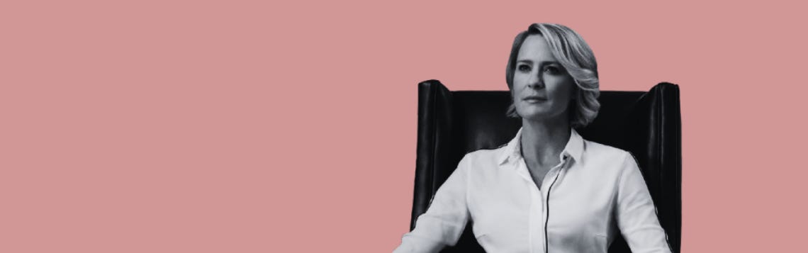 Es una política elegante, implacable y ambiciosa, que asciende al poder con frialdad estratégica y determinación, demostrando que puede ser tan —o más— letal que su marido en el juego político. —Interpretada por Robin Wright—.