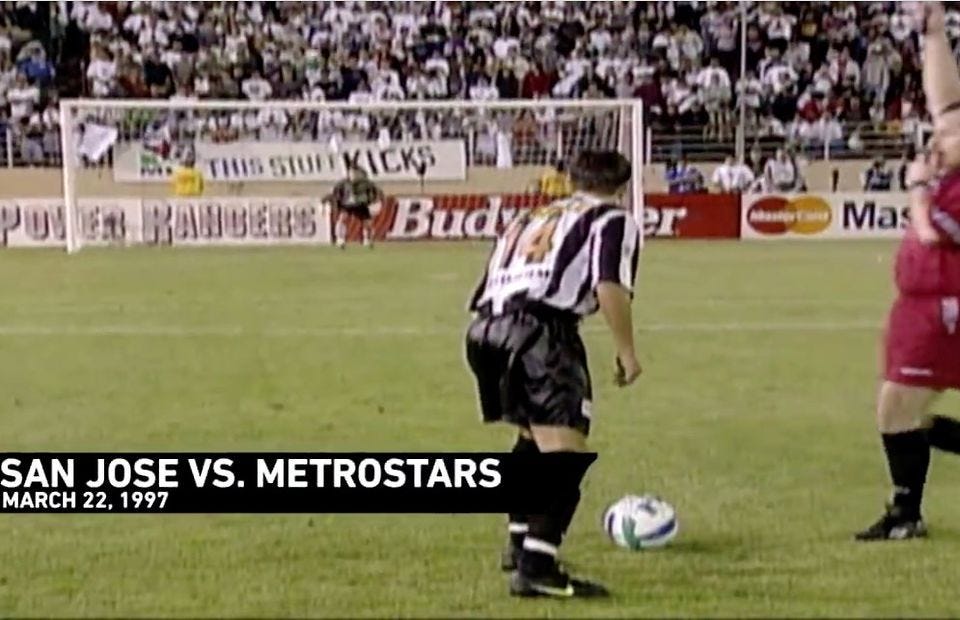Era el mismo fútbol actual, pero adaptado a una cultura que rechazaba el empate, premiaba la espectacularidad y necesitaba un desenlace claro. Con el tiempo, y a medida que el fútbol fue asentándose en Estados Unidos, muchas de estas reglas se abandonaron para alinearse con el estándar internacional. Aún así, para quien nos gusta el fútbol, sigue siendo curioso ver “tirar penalties” mediante una jugada desde el medio campo, como en la imagen de abajo: