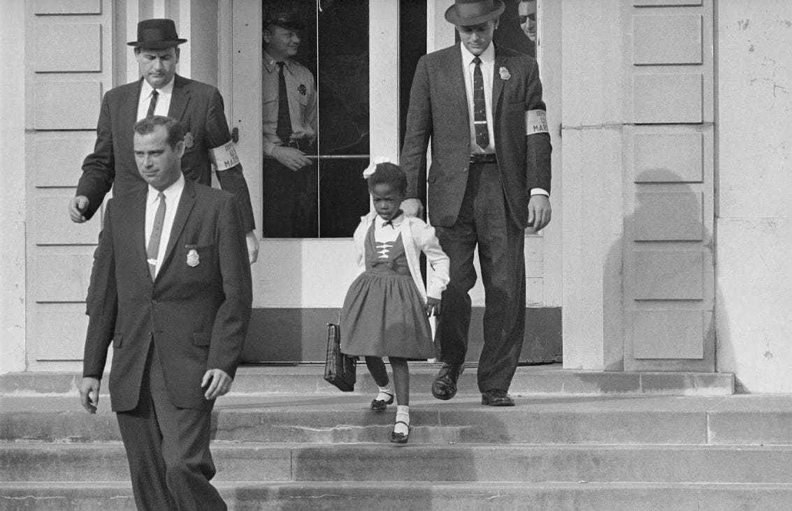 Hoy, diferentes países siguen debatiendo si ciertos episodios de la historia deben o no enseñarse en los colegios. Sigue habiendo bibliotecas escolares que retiran libros sobre derechos civiles y ha reaparecido en la política con asombrosa naturalidad ese lenguaje excluyente de los años 60, pero Ruby Bridges sigue caminando. Con 70 años, como caminó con seis. Hacia adelante.