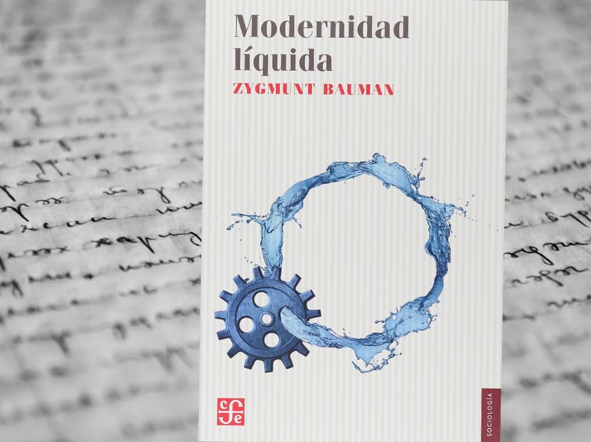 En Modernidad líquida, Zygmunt Bauman analiza cómo la transición de la modernidad sólida a la moderna ha transformado profundamente la vida social, las relaciones humanas y la manera en que los individuos perciben su propia existencia. Utiliza la metáfora de la liquidez para describir una sociedad en la que todo es fluido, inestable y transitorio. Mientras que la modernidad sólida se caracterizaba por instituciones fuertes, reglas claras y una confianza en el progreso como un proceso estructurado, la modernidad líquida es flexible, desregulada y orientada al cambio constante.